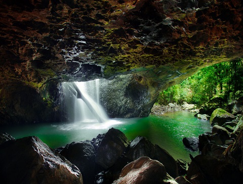 天然橋Natural Bridge 看到一個獨特的瀑布,天黑後,驚人的發現公園的螢火蟲或在陰涼的Nerang河森林公園區。