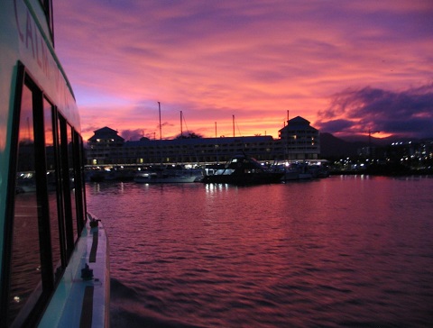 乘賞景遊船沿著三一灣航行,感受一段悠閒的旅程!可欣賞到熱帶地區獨特的水景和山巒美景,觀賞到壯觀的日落景象。夕陽西下之時,您可以在觀光夾板上拍攝落日照片。這次旅行提供了一種奇妙的方式來開始您在熱帶地區的夜晚,並在凱恩斯渡過一個溫暖的熱帶夜晚時享受凱恩斯的樂趣。