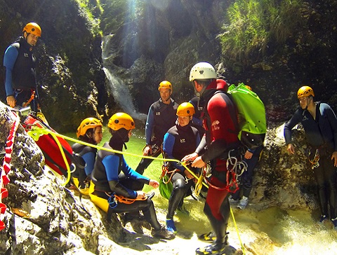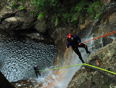 在導遊帶領下,享受在河流玩耍的無限樂趣! 在溪谷間,從兩三公尺高的巨石上一口氣跳入溪流裡,從瀑布上乘著溪水滑下,在溪水里游泳,隨著溪水漂流等,溪降是一個令人驚喜的好玩行程。