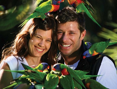 還有一項非常獨特的彩色鸚鵡爭食。澳洲鸚鵡非常美麗,當遊客端著飼料,可愛的鸚鵡會停在遊客手上或頭上,加上吵鬧的鳥叫聲,成百上千彩色鸚鵡集合真是蔚為奇觀。